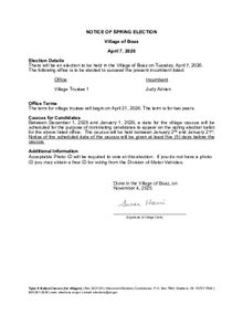 for April 2, 2024 Spring Election and Presidential Preference Primary
