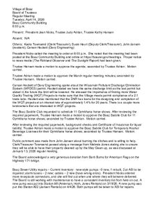 Regular meetings of the Boaz Village Board typically take place the second Tuesday of the month at 6:00 p.m. in the Boaz Community Building gathering room. To participate in public comment at a Village Board meeting, please contact the Village President or Clerk.