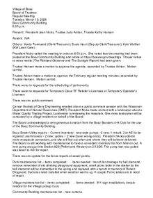 Regular meetings of the Boaz Village Board typically take place the second Tuesday of the month at 6:00 p.m. in the Boaz Community Building gathering room. To participate in public comment at a Village Board meeting, please contact the Village President or Clerk.